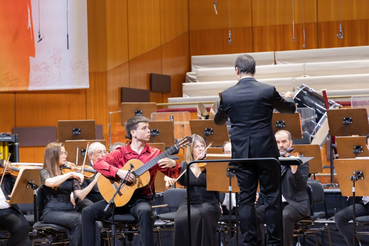 En esta gala, junto a la Orquesta Sinfónica y Coro de Radio Televisión Española dirigida por Carlos Garcés, participó como solista nuestro alumno de Guitarra Asier Candial, como uno de los ganadores del Concurso Melómano intercentros 2024. Interpretó el CONCIERTO ELEGIACO PARA GUITARRA Y ORQUESTA Mov III. Finale de L. Brower.